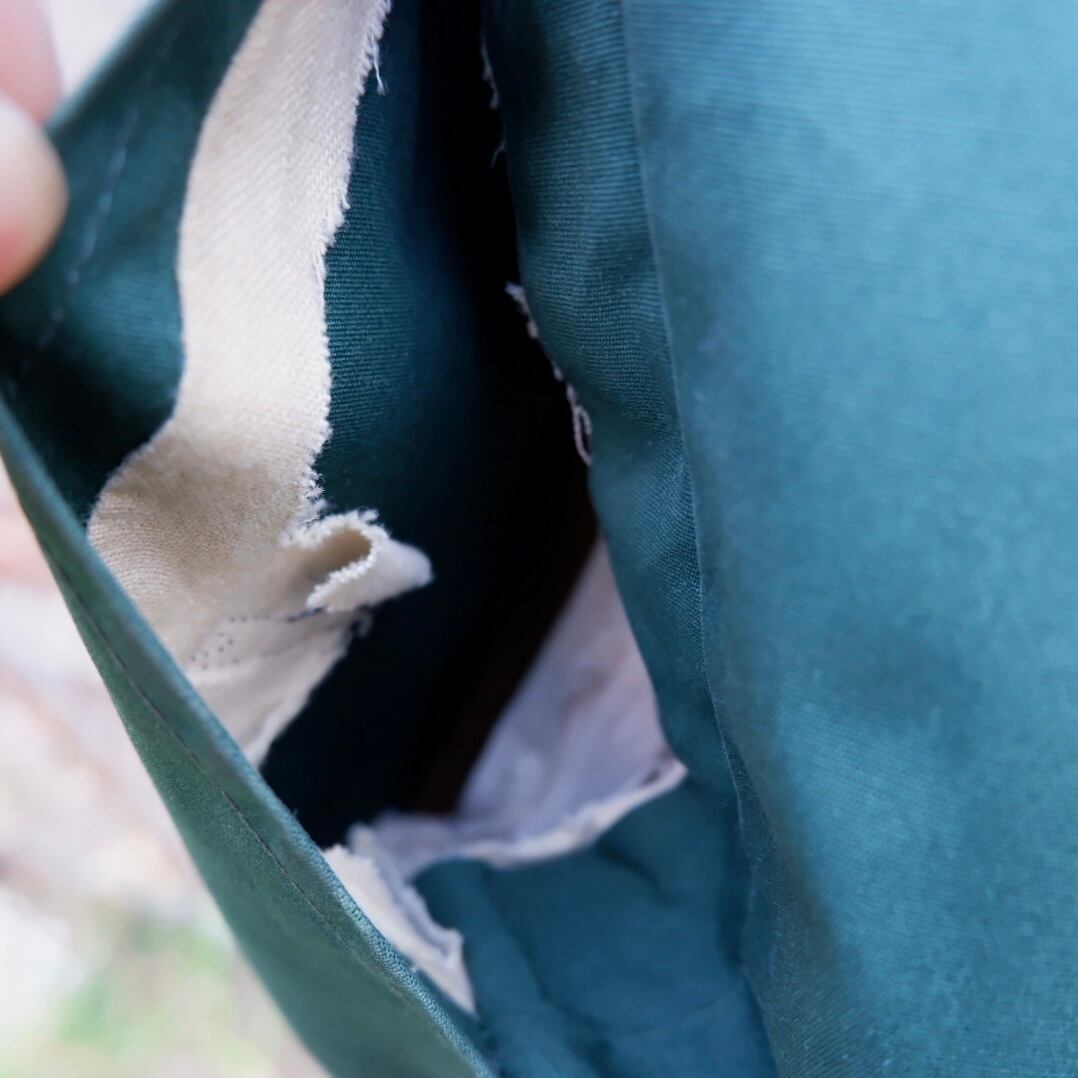 両ポケットの内側の生地が欠損しています。(画像4〜10枚目) ※モノや手はつっこめます。