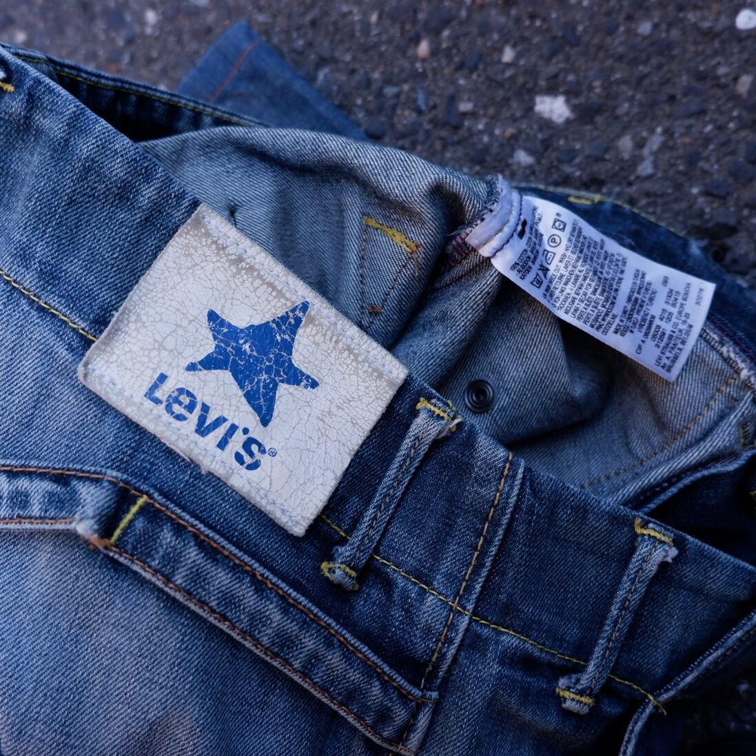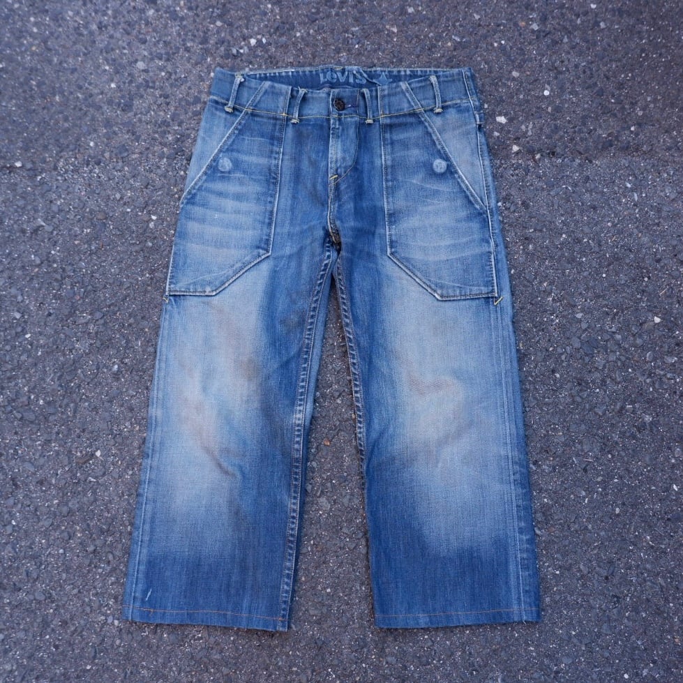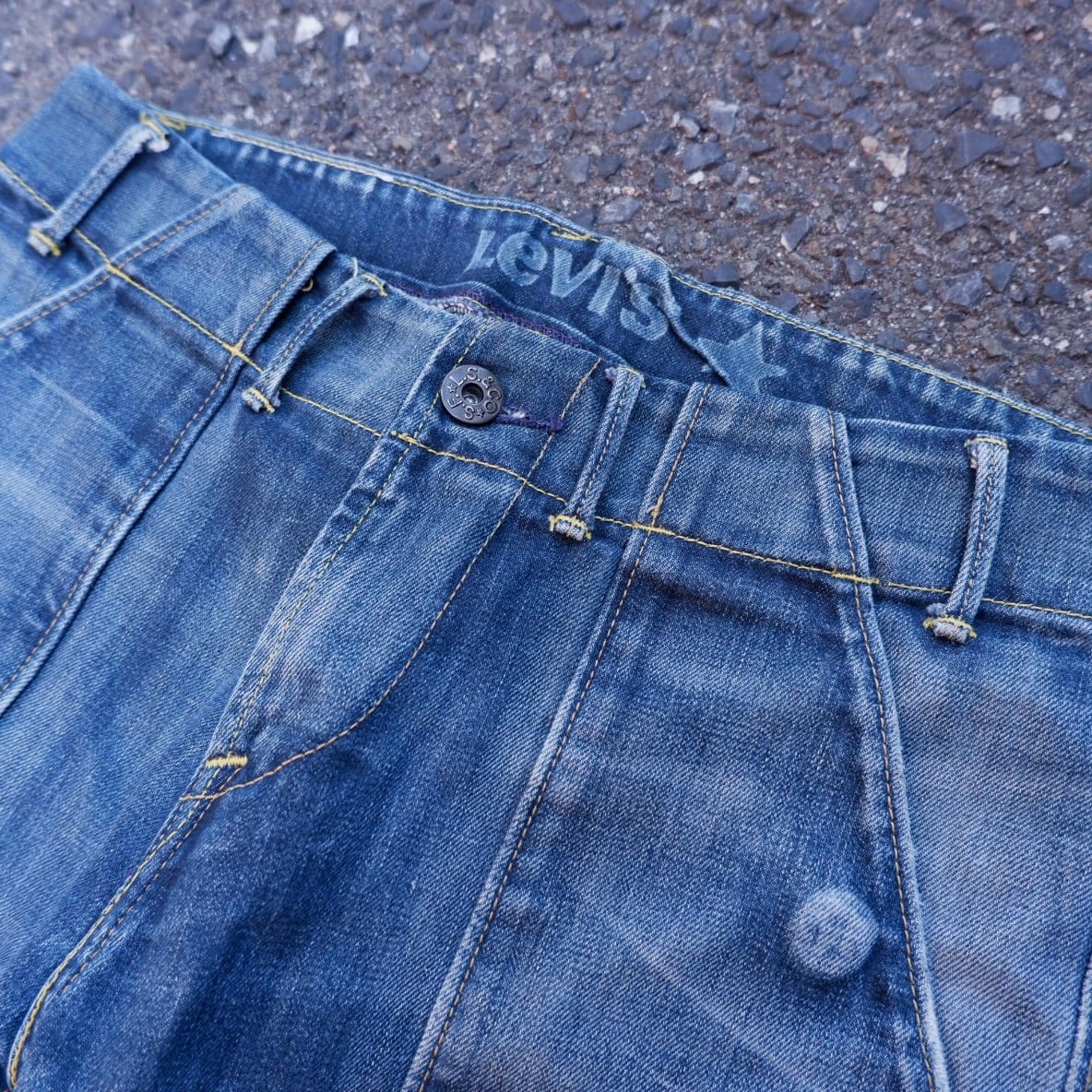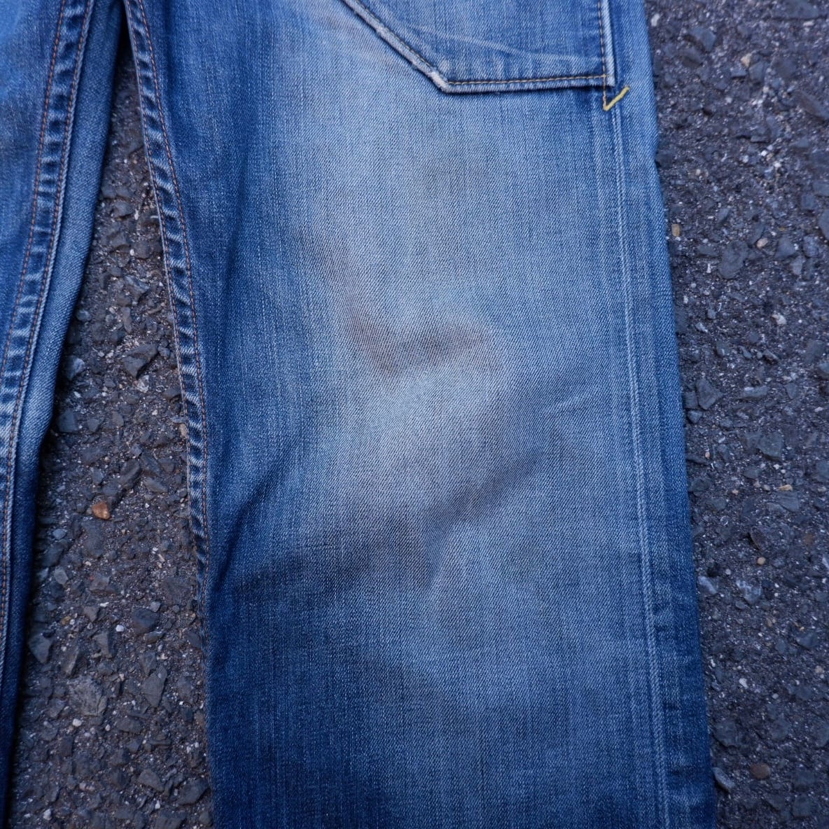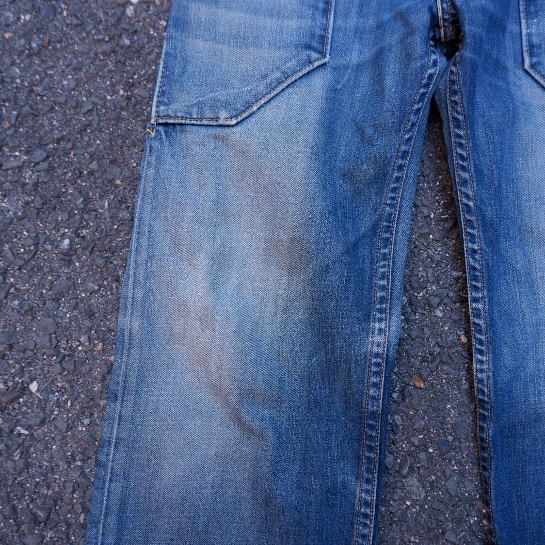 両膝、後身頃、バック股付近に色褪せ、ダメージあります。(画像3.4.10.11枚目)