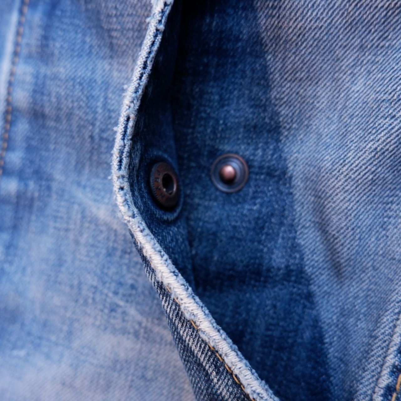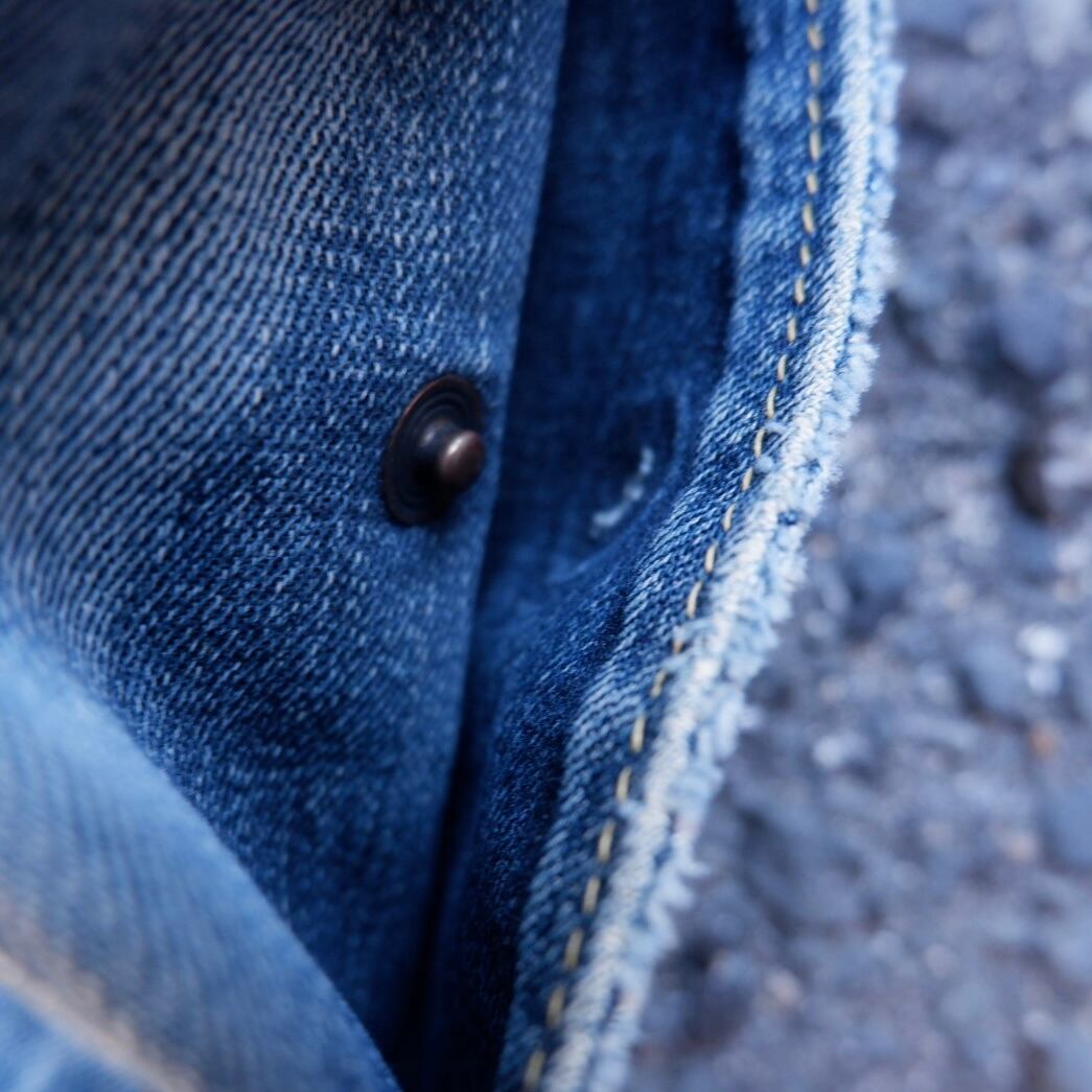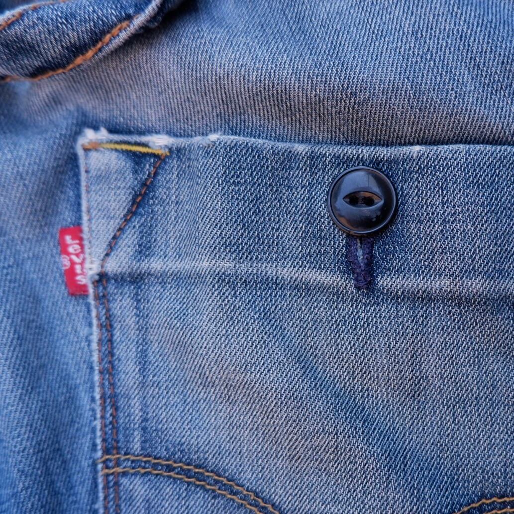 フロント右ポケットのボタンが欠損しています。(画像6枚目)