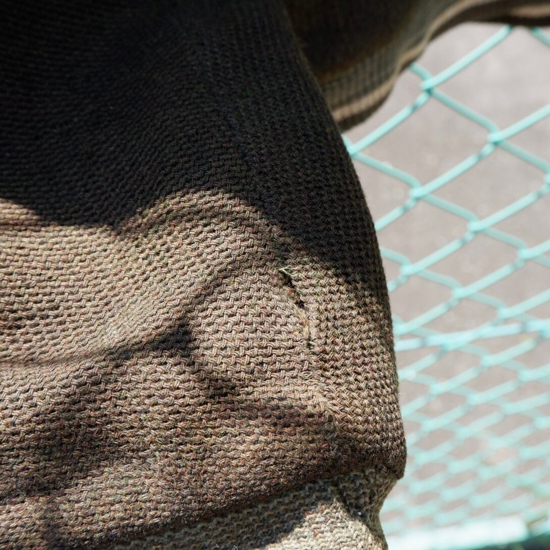 前身頃、両袖先に汚れ、両袖にダメージ、ほつれが数ヶ所あります。